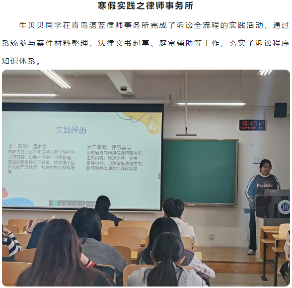 为了更好地鼓励同学们走出校园,走进社会,深入基层,在社会实践里接受教育、增长才能、做出贡献,2月28日下午,学院在玉泉校区西院创新南楼307教室举办"踏实践之路 谱青春法章"寒假社会实践分享会。
