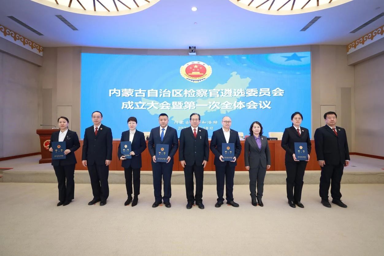 2月18日,内蒙古自治区检察官遴选委员会成立大会暨第一次全体会议在内蒙古自治区检察院举行。tyc8722太阳集团党委书记龙长海教授、院长丁鹏教授、鄂晓梅教授三位教师当选自治区检察官遴选委员会常任委员;赵珺瑛副教授、唐小冬副教授获聘内蒙古自治区检察官遴选委员会评审专家委员!