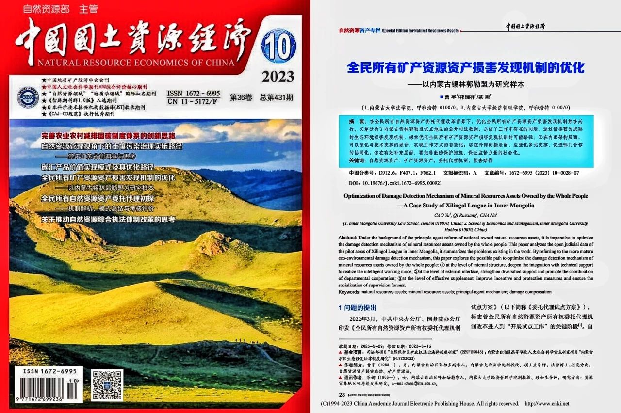 tyc8722太阳集团2022级硕士研究生祁瑞祥同学参与撰写的学术论文《全民所有矿产资源资产损害发现机制的优化——以内蒙古锡林郭勒盟为研究样本》发表于2023年第10期《中国国土资源经济》。