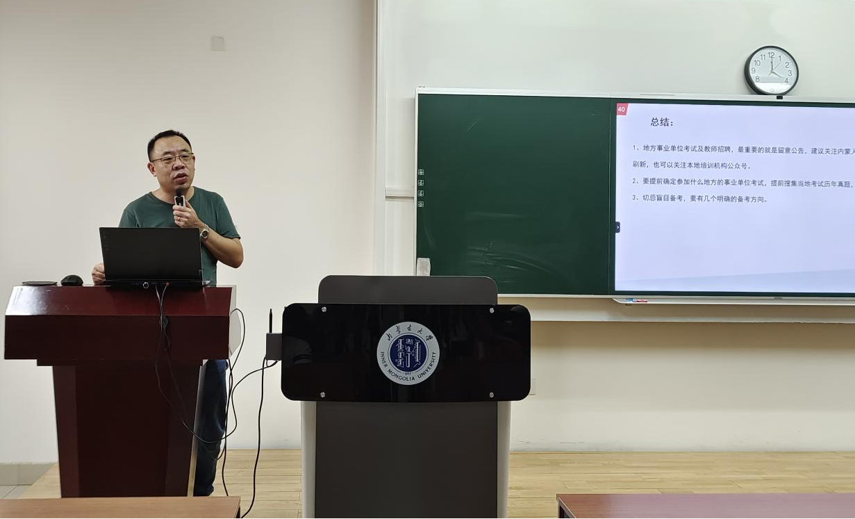随后,杨延帝老师详细讲解了公务员考试的报名条件、报名流程和主要考核内容,让同学们对公务员考试有了进一步的了解。同时,杨延帝老师还拓展性地介绍了事业单位、军队文职、企业招聘、三支一扶、西部计划等求职方向,让同学们了解了更多的就业选择。