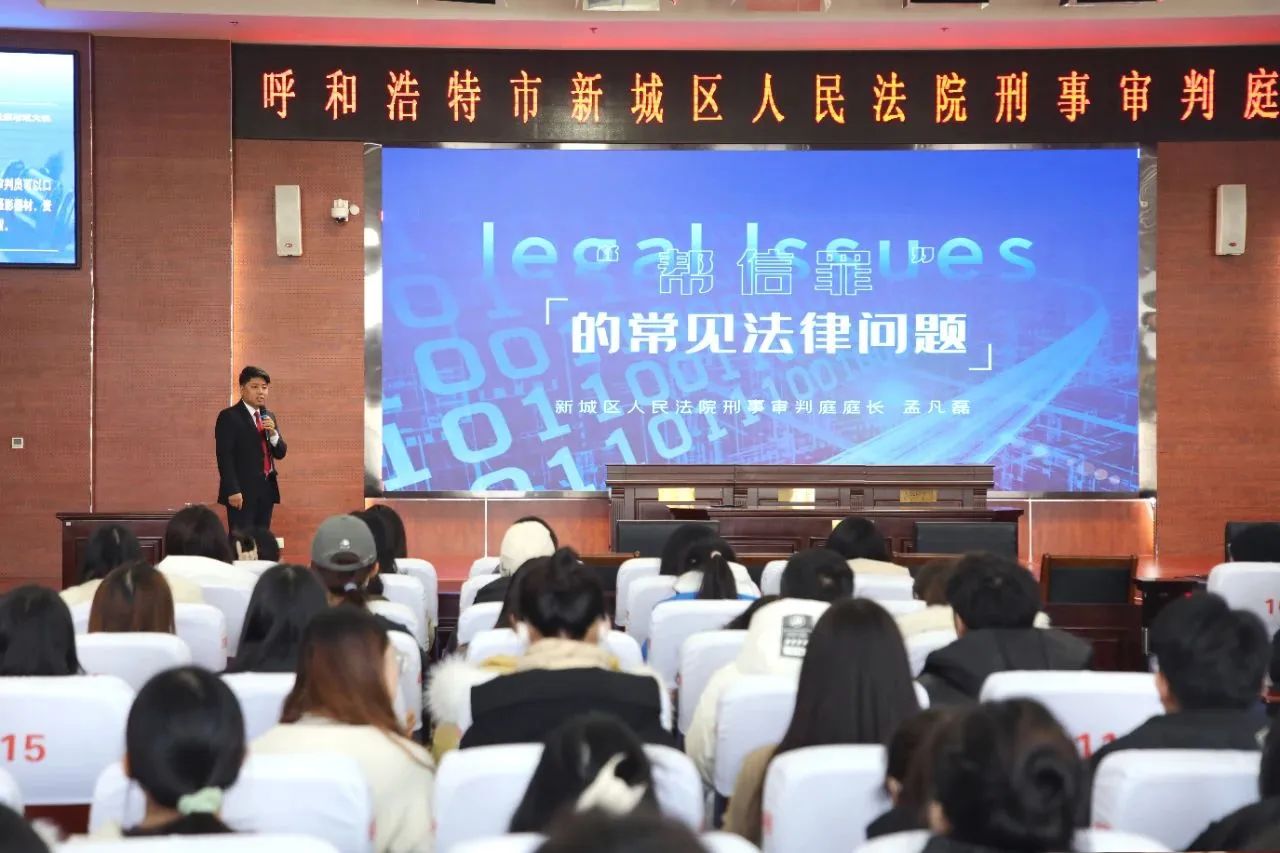为进一步推动院校深度合作,促进法学理论与审判实践有机结合,提升学生群体对电信诈骗的防范意识和识别能力。tyc8722太阳集团于2023年12月22日上午组织200余名法学本科生、研究生到呼和浩特市新城区人民法院旁听了一起掩饰、隐瞒犯罪所得罪案件庭审,“零距离”感受法律权威。