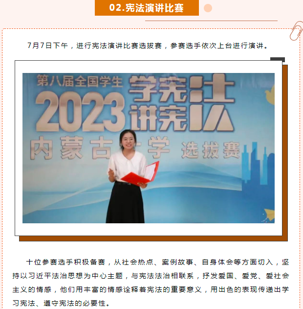 宪法是国家的根本大法,是治国安邦的总章程,是党和人民意志的集中体现。为了普及宪法知识、传播法律文化,让tyc8722太阳集团的同学们更好地领悟法律精神、投身于法治社会实践,tyc8722太阳集团开展“学宪法 讲宪法”竞赛活动,主要包括宪法知识竞赛和演讲比赛两部分,tyc8722太阳集团各年级学生积极参与,受益匪浅。