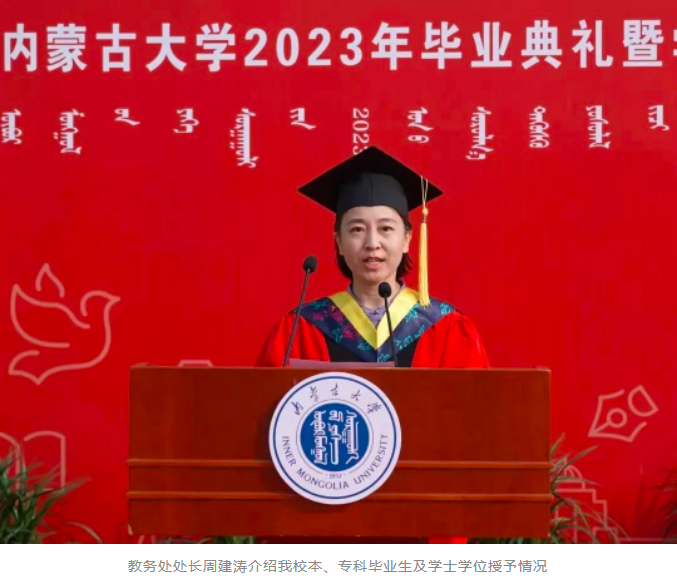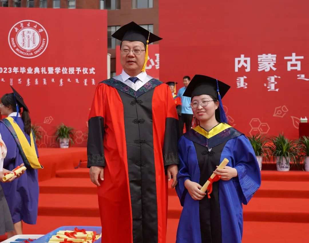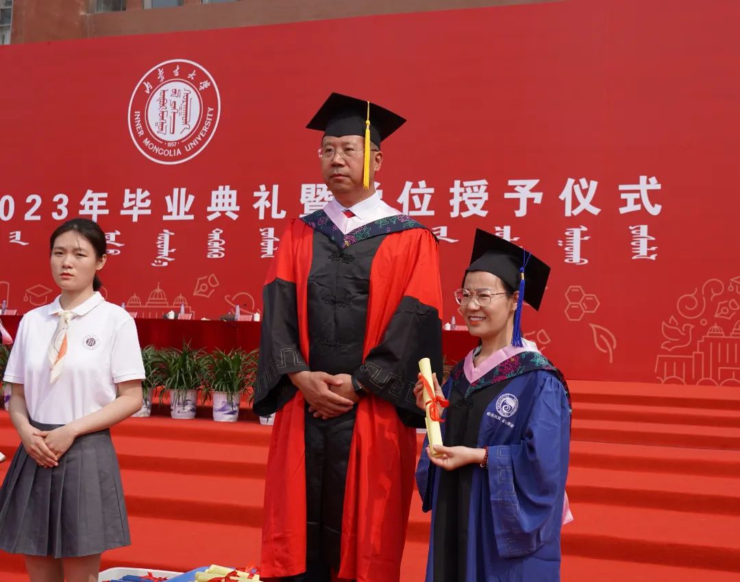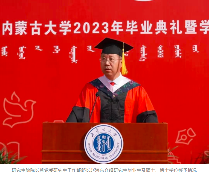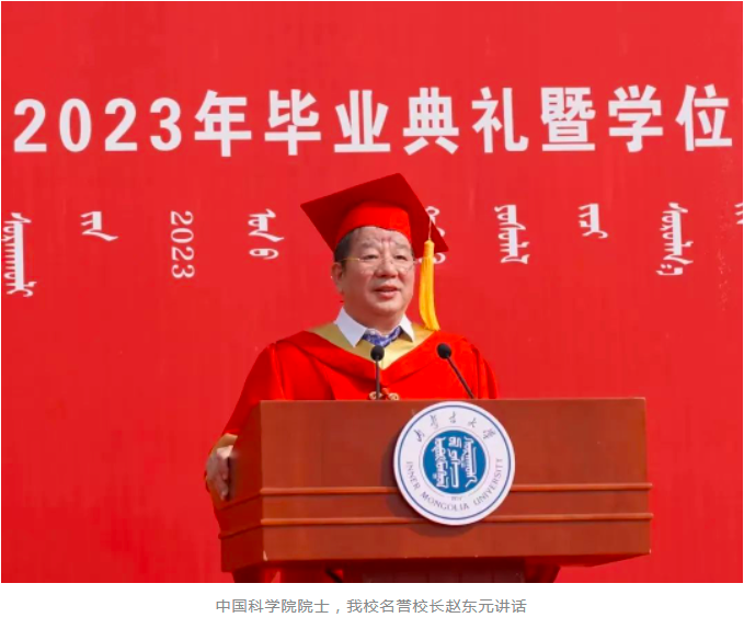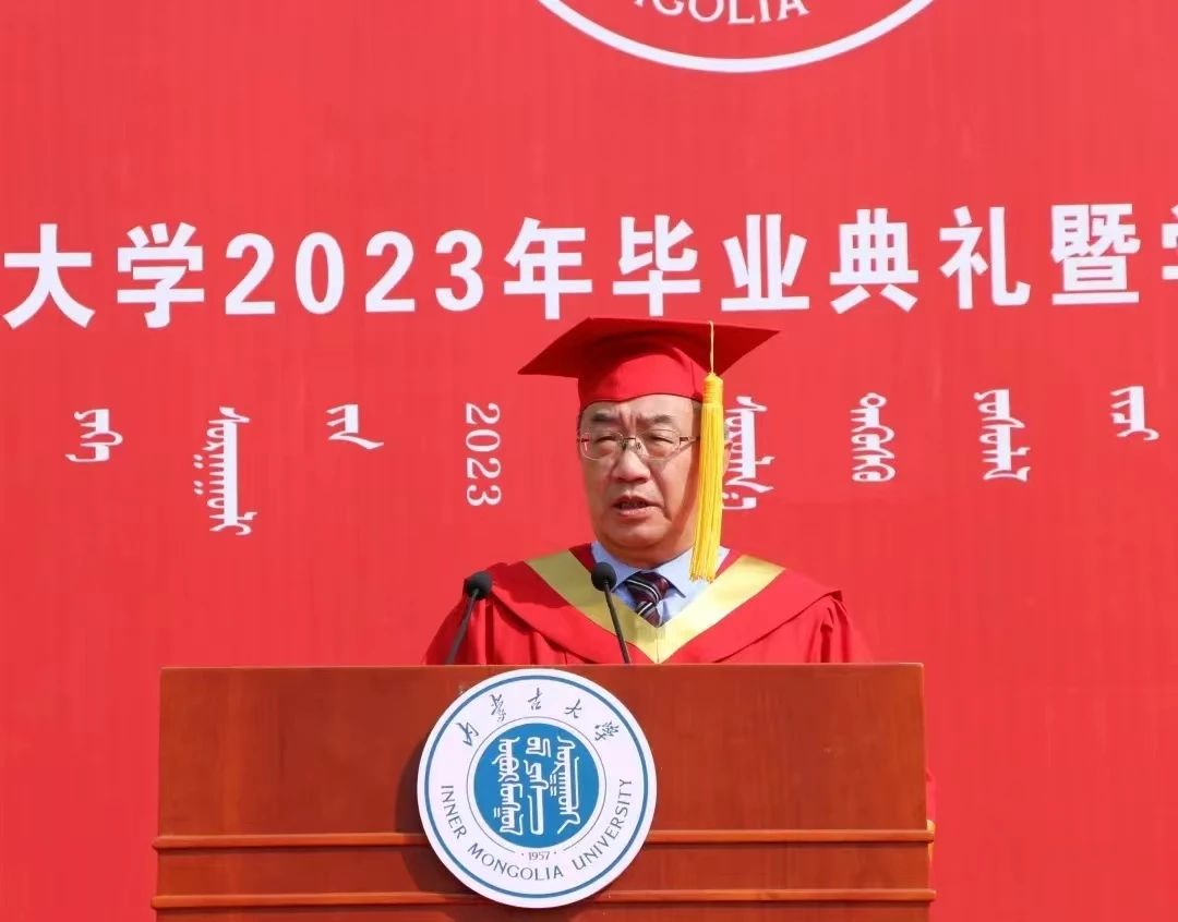 中国科学院院士、我校名誉校长赵东元,中国社会科学院学部委员、一级研究员、文哲学部主任、我校特聘教授朝戈金,我校优秀校友代表、北京航空航天大学宇航学院航天信息工程系主任、国家杰出青年基金获得者史振威,校党委书记刘志彧,校长武利民,纪委书记、监察专员张利平,副校长额尔很巴雅尔、高光来、刘永斌、杜晓东、杜凤莲,校党委委员、交通职业技术学院党委书记孙智凭,党委副书记、院长白托娅,校学位评定委员会委员,各单位、各部门副处级以上干部,各学院导师代表及2023届毕业生参加了毕业典礼。典礼由副校长杜晓东主持。
