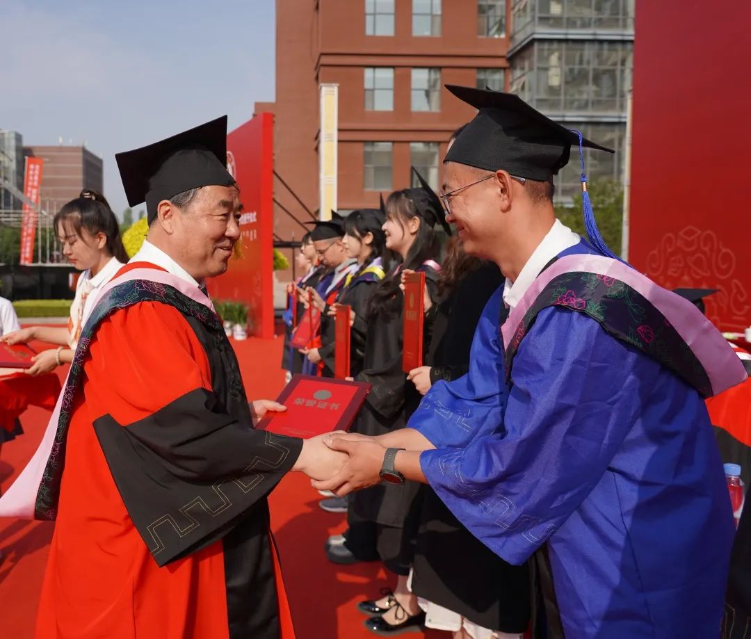 毕业典礼上,教务处处长周建涛介绍了我校本、专科毕业生及学士学位授予情况。研究生院院长兼党委研究生工作部部长赵海东介绍了研究生毕业生及硕士、博士学位授予情况。2023年,全校共有3500余名本科毕业生获得学位,2500余名研究生毕业生获得学位。校学位评定委员会各位委员分别为博士毕业生、硕士毕业生和本科毕业生授予学位并颁发了学位证书。