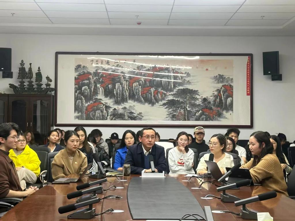 陈朵博士简单介绍了我院2025级法学(涉外法治)班拟赴香港大学访学交流计划,期待学生在交流中拓宽视野,也希望与兄弟院校进一步深化合作。