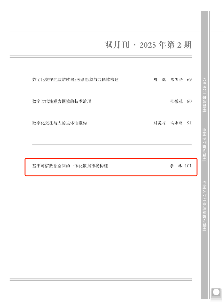 我院教师李林博士撰写的学术论文《基于可信数据空间的一体化数据市场构建》在AMI权威期刊《中国特色社会主义研究》(2025年第2期)上发表。