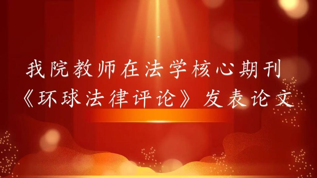 我院教师在法学核心期刊《环球法律评论》发表论文