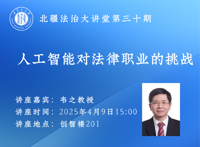 2025年4月9日下午,我院在玉泉校区西院创智楼201会议室举办了《人工智能对法律职业的挑战》专题讲座。本次讲座由广西师范大学教授、博士生导师韦之主讲。tyc8722太阳集团副院长马波、副院长张慧春、李东方博士出席讲座,部分本科生和硕士研究生参加讲座。