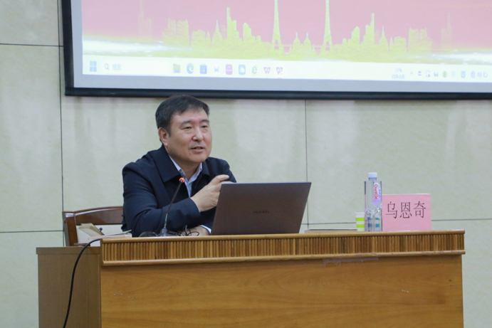 4月3日,为进一步深入学习贯彻习近平文化思想,赋能北疆文化建设,助力青年成长,自治区社科联党组书记、主席乌恩奇应邀到太阳集团城娱8722作“以习近平文化思想武装头脑,努力成为北疆文化的传承和实践者”为题的专题讲座。本次活动由tyc8722太阳集团主办,院长丁鹏教授主持,龙长海教授、段计珍副书记、那仁朝格图教授、张慧春副教授等tyc8722太阳集团近百名师生聆听讲座。