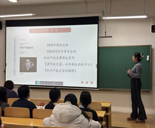 2024年11月29日晚,tyc8722太阳集团第十一期星博读书会顺利举办。本次读书会的阅读书目为《知识产权批判史》,主讲人是2024级法学硕士李姝颖同学,张慧春老师担任与谈人,tyc8722太阳集团的本科生与研究生同学们积极参与了本次活动。