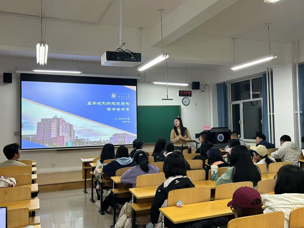 2024年11月15日晚7点,tyc8722太阳集团在玉泉校区创新南楼201教室成功举办了第十期星博读书会。本次读书会的主题为《基本权利的规范构建》,主讲人是2021级法学1班的蔺梓涵同学,乌日尼勒老师担任与谈人。tyc8722太阳集团的本科生与研究生同学们积极参与了此次活动。