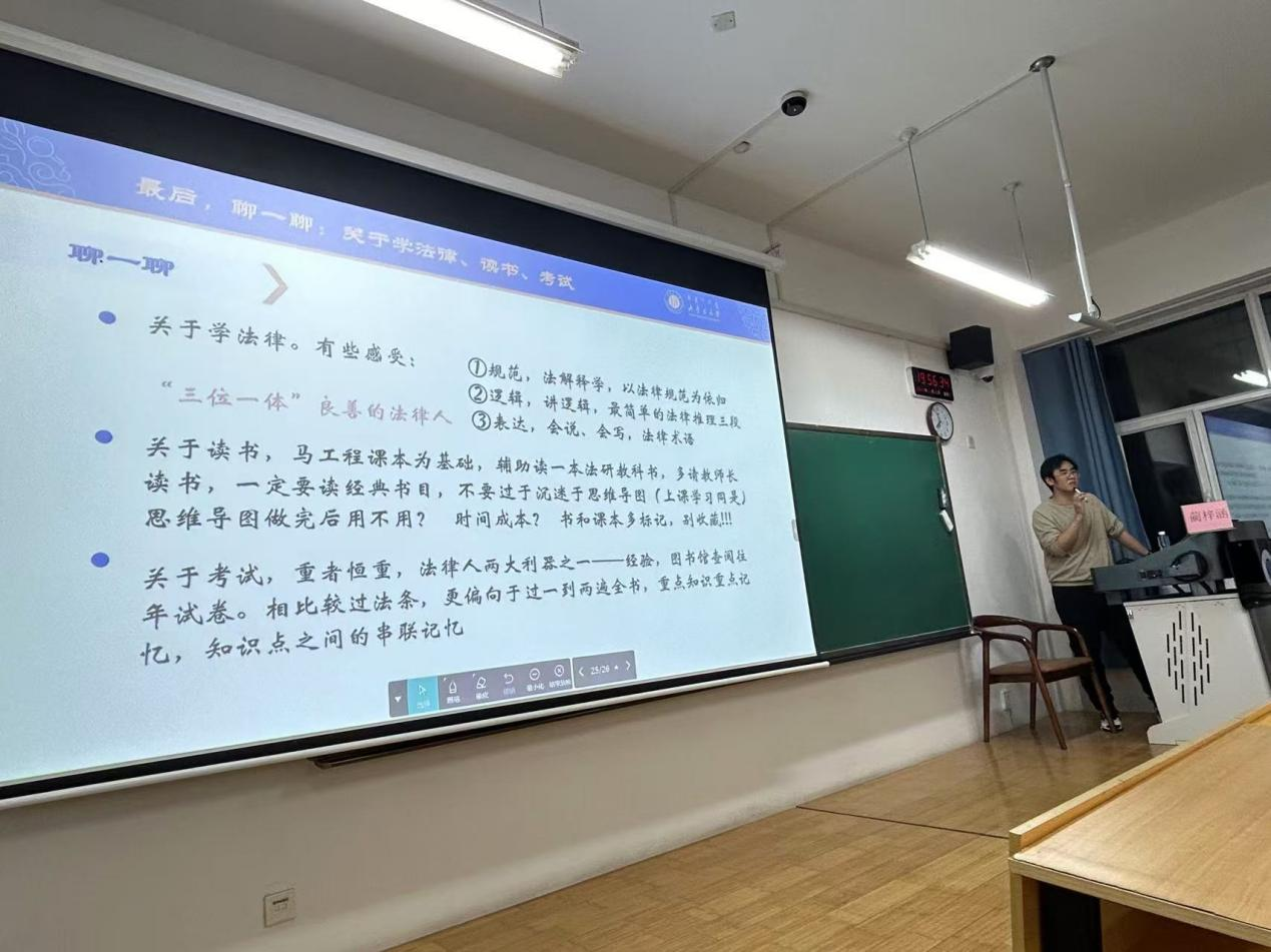 最后,蔺梓涵同学还分享了自己在学习法律、阅读书籍及备考过程中的心得体会,为同学们提供了实用的学习指导。乌日尼勒老师对蔺梓涵同学的讲解进行了精彩的点评,现场同学们也踊跃提问,蔺梓涵与同学们进行了深度的交流。至此,本次读书会圆满结束。