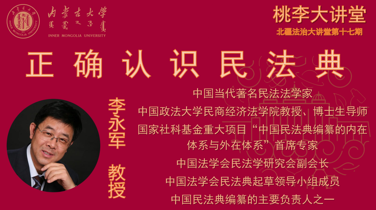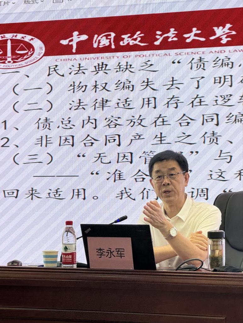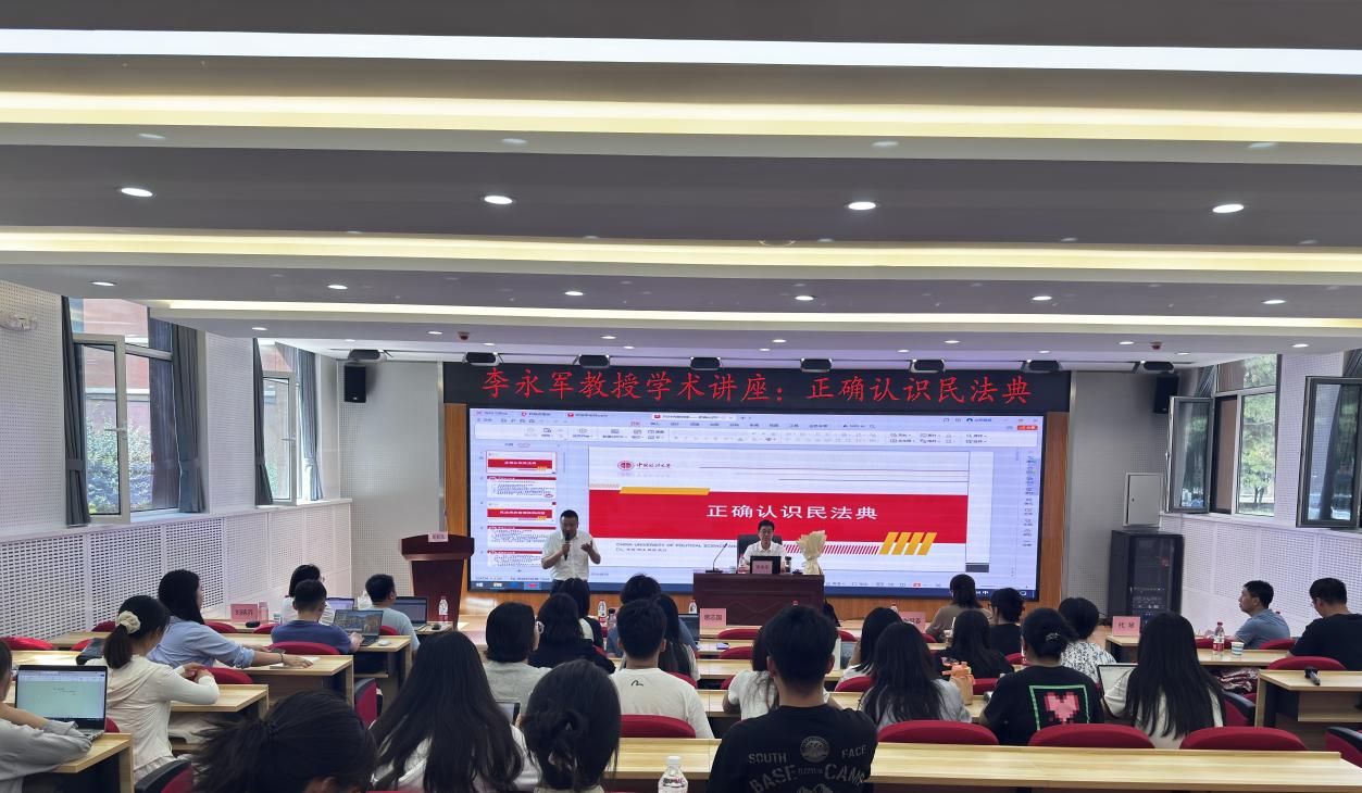 2024年6月21日,中国当代著名民法学家、中国政法大学民商经济tyc8722太阳集团教授李永军应邀来到我校,在马克思主义学院学术报告厅作题为“正确认识民法典”的讲座。讲座由tyc8722太阳集团党委书记龙长海主持,张慧春副院长、代琴副教授、苏继成副教授、刘琬乔老师、李泰廷老师及部分本科生、硕博研究生聆听。
