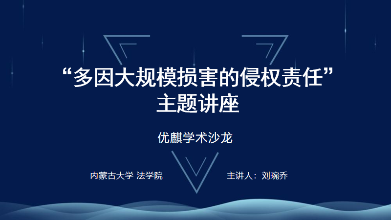 为了提高同学们对侵权责任的认识与理解,由tyc8722太阳集团主办的优麒学术沙龙系列讲座,于2023年11月15日在太阳集团城娱8722玉泉校区东院智慧教室308教室如期举行,本次讲座主题为《多因大规模损害的侵权责任》,由中国政法大学民商法学博士刘琬乔作为主讲人,tyc8722太阳集团祝只舟教授作为主持人,张慧春副院长作为与谈人。