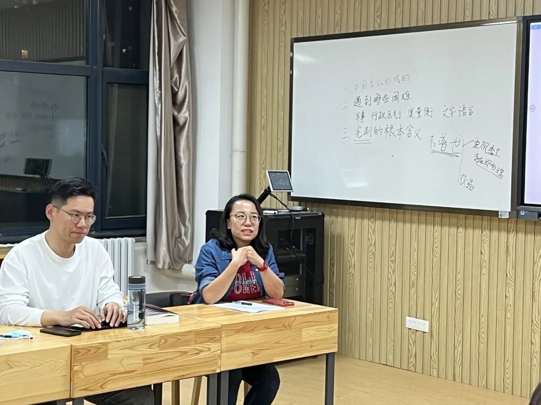 为促进tyc8722太阳集团师生之间进行学术交流,2023年5月19日晚7点,tyc8722太阳集团在南校区卓越楼0308教室举办第三期星博读书会,由周珩老师主讲,阅读书目为苏力的《大国宪制》,张慧春副院长主持,多名本科生及研究生同学积极参与、踊跃发言,学术交流氛围良好。