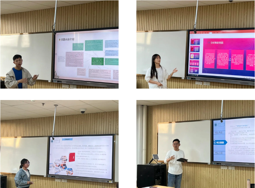 读书会开始,首先由三名本科生同学和六名研究生同学分享自己的读书心得,他们各抒己见。部分同学对书的内容进行分类总结,分享个人见解并提出问题;部分同学旁征博引,立足原书,拓展思维,建立了多学科联系。周珩老师对同学们的思考提出表扬,并对疑问进行解答。