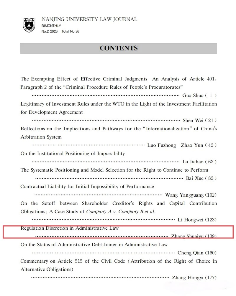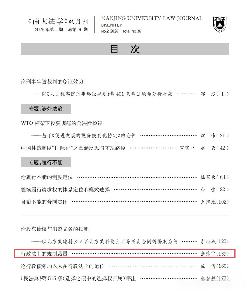 我院教师张帅宇在《南大法学》发表学术论文。