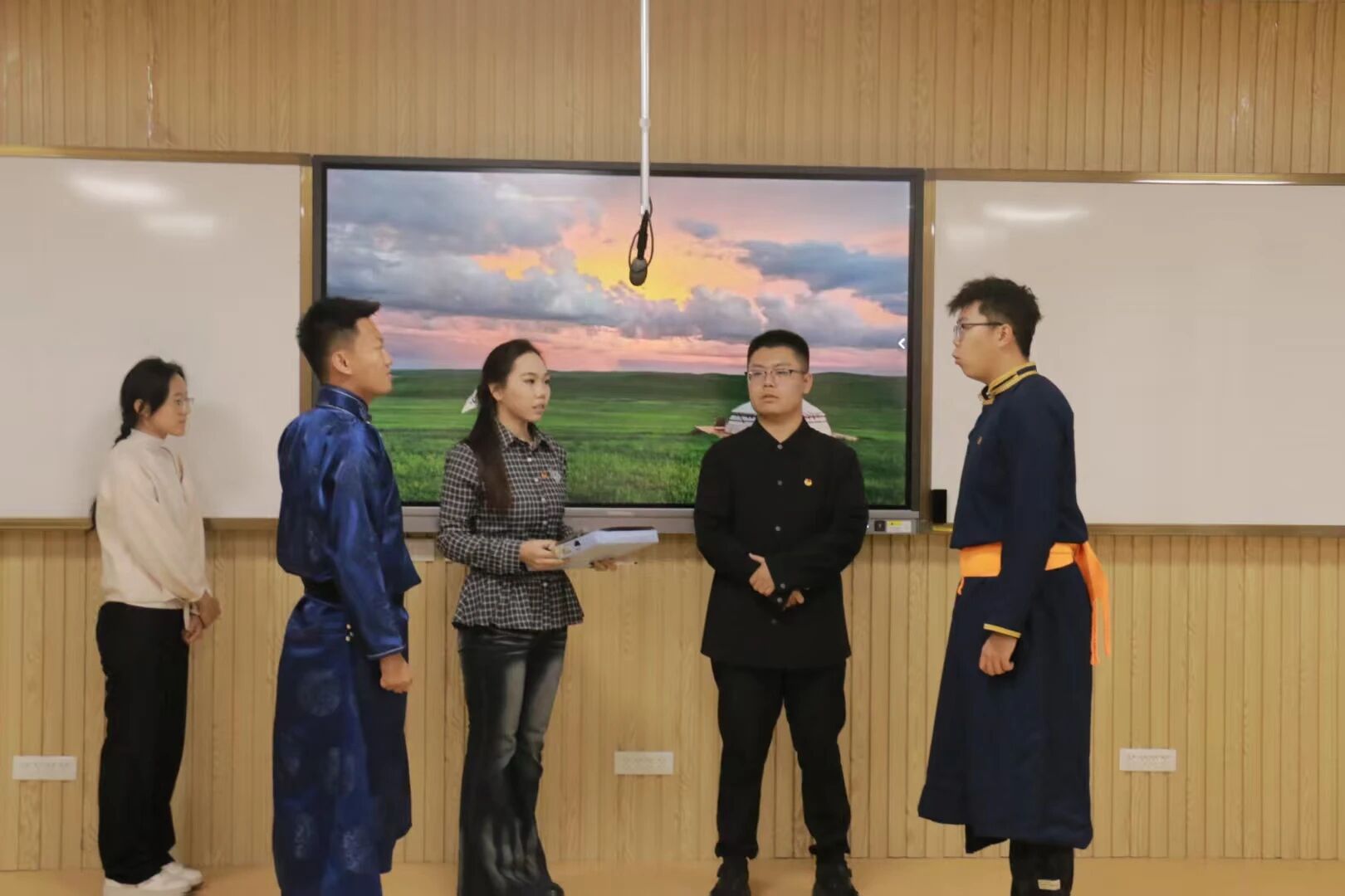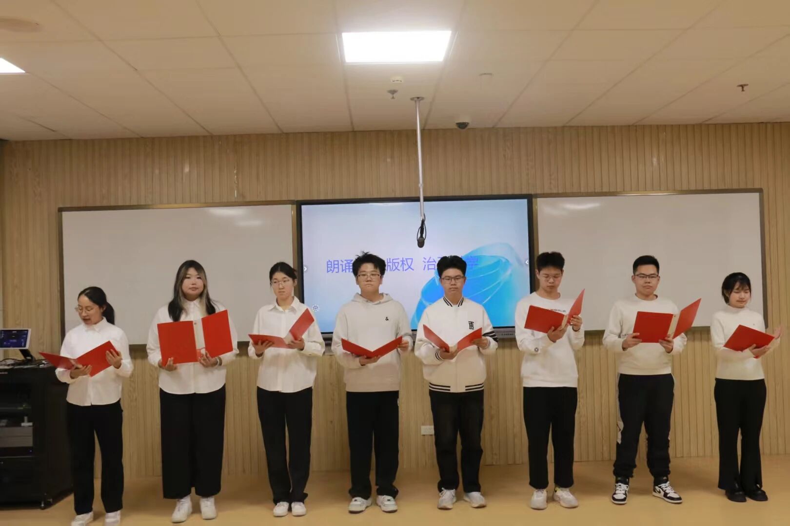 比赛现场,各参赛队伍围绕活动主题,结合法学专业特质,通过法律条文创意解读、深情朗诵、情景演绎等多元形式展开现场比拼。