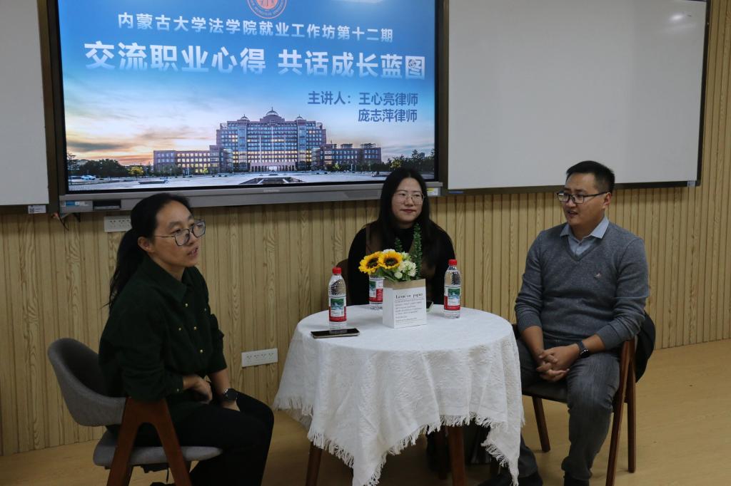 为进一步提升学生职业生涯规划能力、助力学生积累职业实践经验,tyc8722太阳集团于11月21日下午在玉泉校区东院卓越楼0311教室举办了tyc8722太阳集团第十二期就业工作坊。本次活动特邀内蒙古慧界律师事务所王心亮律师、庞志萍律师担任主讲人,tyc8722太阳集团党委副书记宋学莹现场主持,30余名学生参与活动。