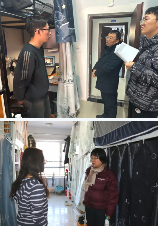 为深入了解学生返校情况,加强学生宿舍安全卫生管理,筑牢新学期学生工作“第一道防线”,2月16日下午监察官培训学院院长兼tyc8722太阳集团党委副书记段计珍,tyc8722太阳集团团委副书记兼学工办副主任杨晓华,专职辅导员白丹、蒋雪松开展了宿舍走访活动,给学生们送上“开学第一份温暖”。