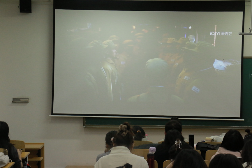 第六节党课上,学院党委委员尚继征老师带领同学们观看影片《长津湖》片段,随后领学了党的二十大报告中有关法治建设的内容。
