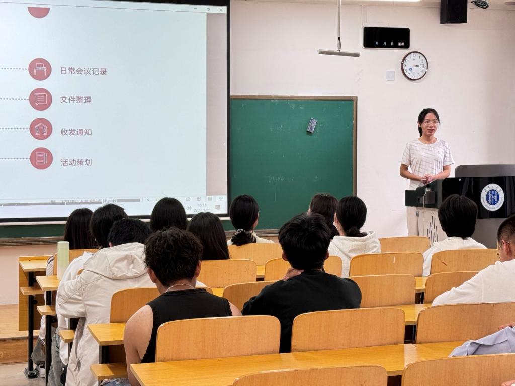 张一焓同学分享了她在家乡团旗委政务实习的经历。通过文件整理、活动策划等工作,在实践中学习,增强了业务能力,提升了专业素养和技能水平。