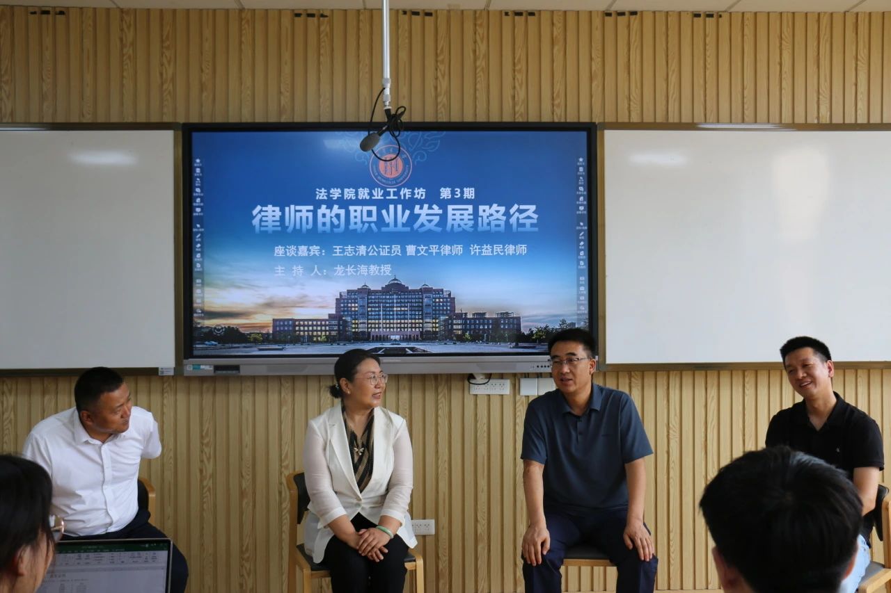 三位嘉宾围绕“律师的职业发展路径”,结合自己多年法律从业经历进行了分享,为同学们提供了宝贵的职业规划建议。
