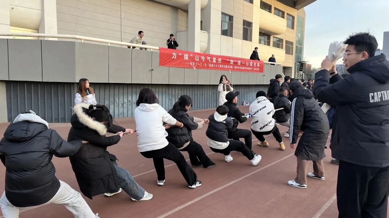 为纪念“一二·九”爱国运动88周年,培养新时代大学生勠力同心,拼搏奋进的团队精神,学校于12月9日下午14:30在赛罕校区操场举行了拔河比赛,tyc8722太阳集团在此次比赛中取得优异成绩。