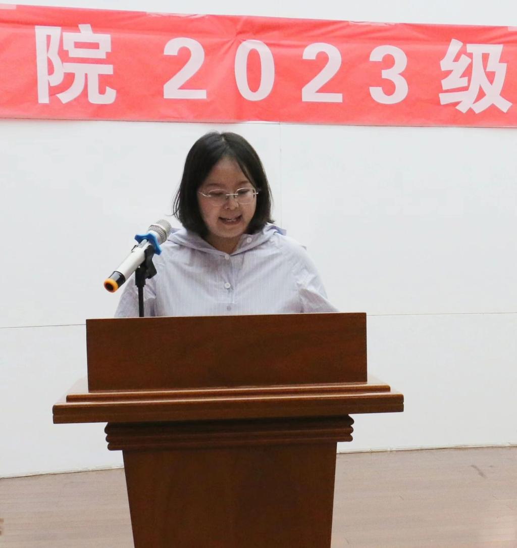 郭宇老师作为教师代表发言。她以“轻舟要过万重山”为切入点,勉励同学们要明确目标、保持专注、有进取心、为人真诚,在未来的学习生涯中努力做到格物明理、致知笃行。