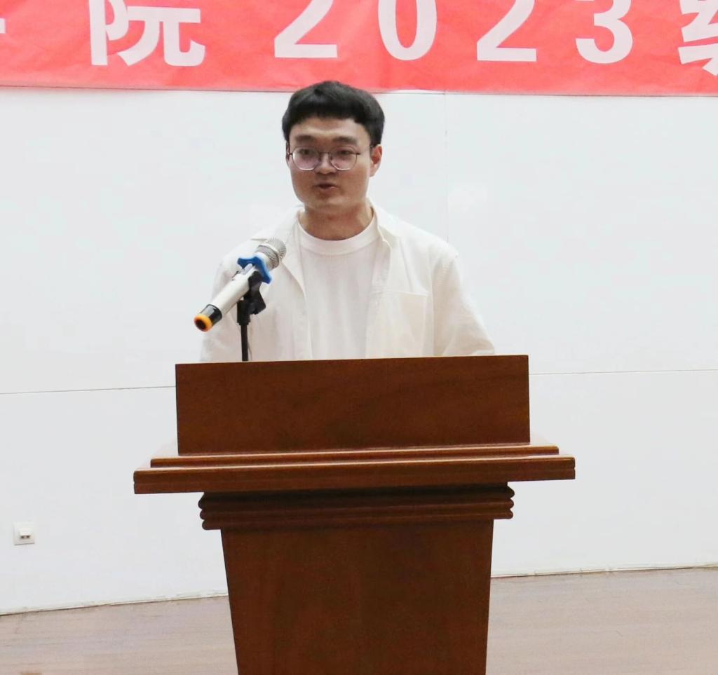 2022级本科生张科同学作为在校生代表发言。他在向2023级新生表达美好祝愿与真挚祝福后,根据自己在tyc8722太阳集团学习生活的经历与感悟,向2023级新生提出了学习和生活建议。