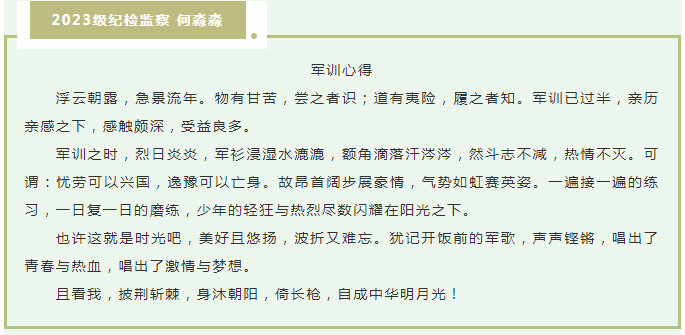 征军训一途,乘一苇以航。努力尽今夕,少年犹可夸。历过汗流浃背,尝试过突破极限,几日以来的种种记忆,早已在骄阳下开出热烈的花,结成甘甜的果。2023级同学们在为期21天的军训之旅中用坚定的信念和意志书写了他们的成长答卷,下面就让我们一起来回顾一下这段美好的军训生活吧!