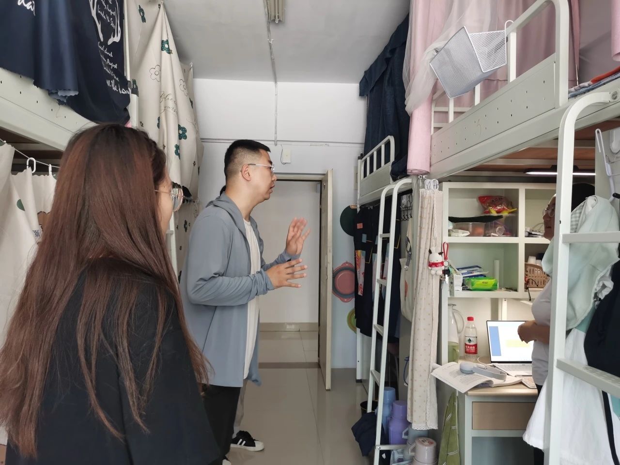 走访过程中,吴晗老师仔细查看宿舍的用电安全情况及卫生情况,针对学生在校内学习复习,在校外实习实践、参加活动等情况进行了了解,同时告诫同学们要安全用电,提高安全意识,杜绝一切违规电器的使用,防患于未然,为自己和他人生命负责。吴晗老师还和同学们亲切地交流了关于学习和生活方面的问题,并提醒同学们共同努力,积极营造一个温馨、整洁、安全的生活环境。
