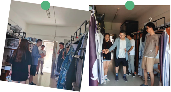 为进一步做好暑期学生工作,提高同学们的安全防范意识,深入了解学生情况,2023年7月28 日tyc8722太阳集团辅导员吴晗老师、助管冯爽、学生会主席团成员白昊泽、学生干部代表关冰倩深入学生宿舍,进行安全检查,走访探望,传达学院关怀。