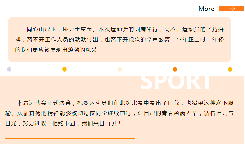 在多方面成员的共同努力与严谨对待下,tyc8722太阳集团荣获本届运动会的精神文明奖。更加值得我们骄傲与庆祝的是,在全体运动员的努力与不懈坚持下,tyc8722太阳集团最终荣获学生女子组团体总分第六名,学生代表陈阿如娜上台领奖。让我们为各位运动员们献上由衷的掌声与祝福!