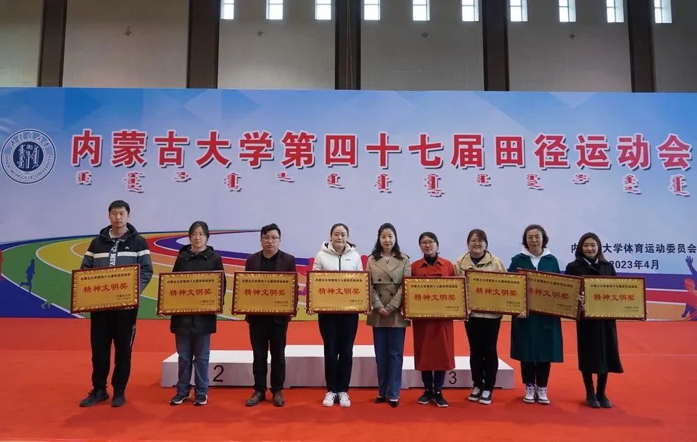 本届田径运动会精神文明评比委员会主任周琳娟宣布了精神文明优胜单位。在两天的运动会期间,我校各学院运动员秉持健康向上的运动精神,现场观众以饱满的热情和良好的状态为运动员呐喊助威,自觉遵守大会秩序,均体现了“崇尚真知、追求卓越”的内大精神。哲学学院、化学化工学院、外国语学院、tyc8722太阳集团、教务处民族预科班、计算机学院(软件学院)、电子信息工程学院、生态与环境学院、体育学院、满洲里学院共10个单位获得精神文明奖。