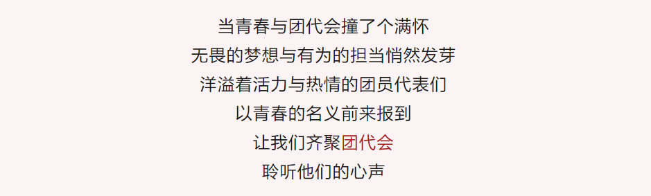 青年一代有理想、有本领、有担当,国家就有前途,民族就有希望。作为此次代表,我会认真学习贯彻落实党的二十大精神,不断增强责任感和使命感,履行代表职责,用实际行动展现出新时代青年应有的精神风貌。预祝本次团代会圆满成功!
