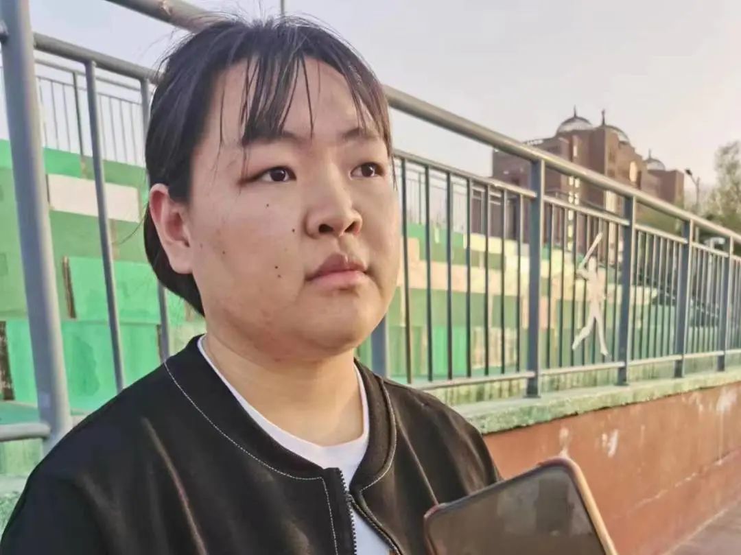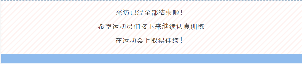之后我们采访了参加铅球和标枪项目的张明悦同学,她说自己在铅球项目上比较有经验,但是第一次尝试标枪项目。她表达了自己第一次参加运动会激动和紧张的心情,同时表示自己赛前每天积极训练,锻炼臂力学习技巧,吃高蛋白的食物,希望自己能够在比赛中取得优异的成绩。