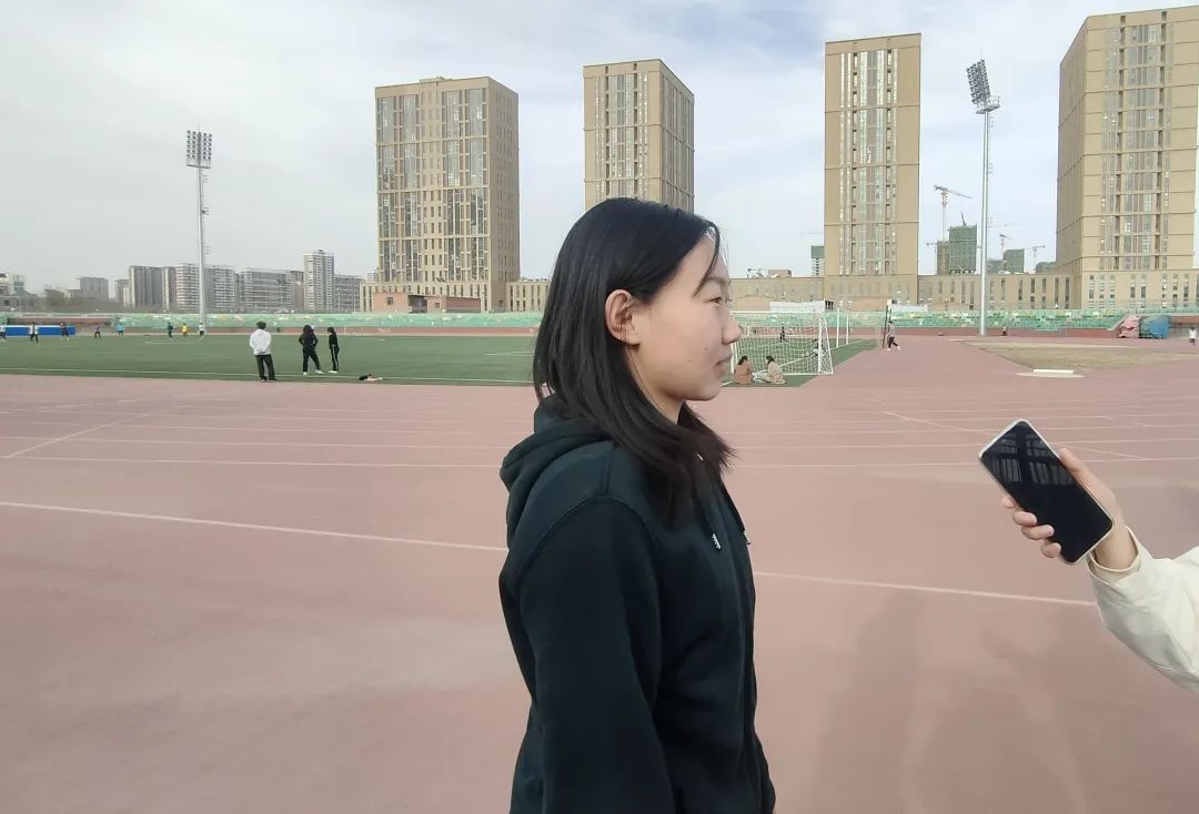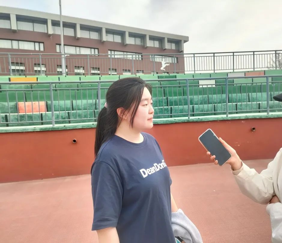 随后,我们采访到参加七项全能的陈阿如娜同学。她表示想尝试多个项目,会每天跟着学院一起训练七项比赛项目,同时会坚持在足球队训练,她相信每天连续两趟训练课会让她不断提升自己。此外,她表示自己会在专项练习上加强锻炼,希望在比赛中能取得好成绩。