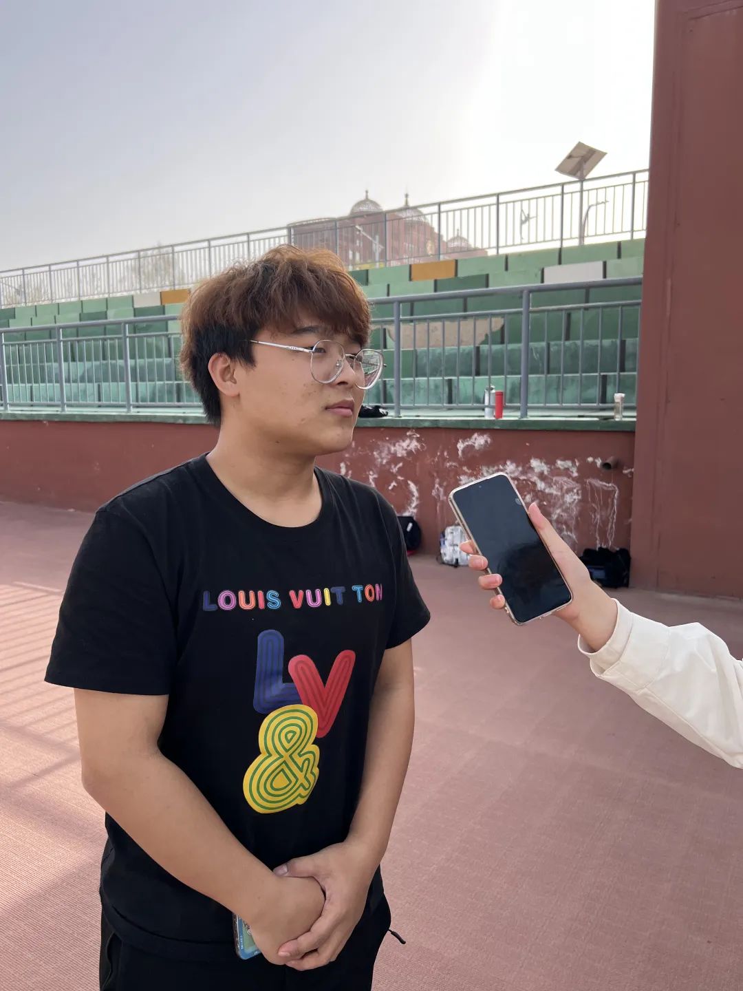 随后,接受采访的是参加标枪项目的张羽飞同学,她表示自己平时打羽毛球,练射箭,手臂力量有一定基础,希望通过进行体能基础训练来增强右臂力量以及动作协调发力,并学习标枪项目具体比赛规则。在比赛前会注意调节心态,加强身体协调一致发力,熟悉规则,避免因犯规导致成绩减损。她表示在大学第一学年第一次参加运动会自己十分激动,同时也很紧张,希望自己在比赛中能够发挥正常水平。