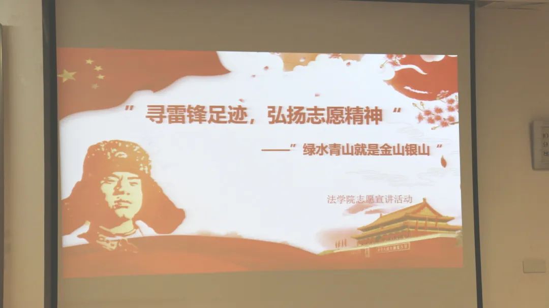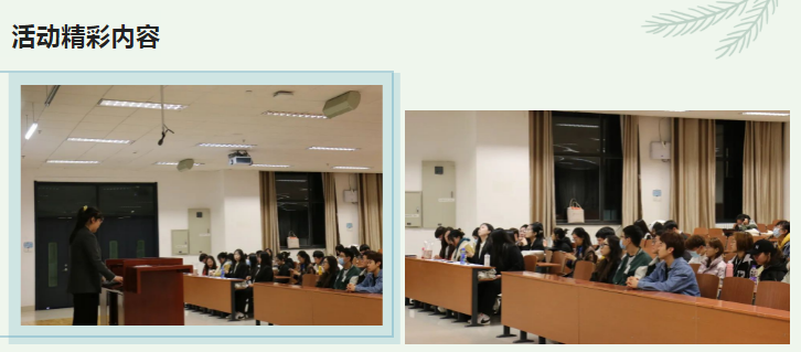 志愿者刘洪稚通过对习近平总书记“两山”理论和我国环境保护的实例以及立法保障的介绍,向同学们提供了践行环保理念的具体措施。