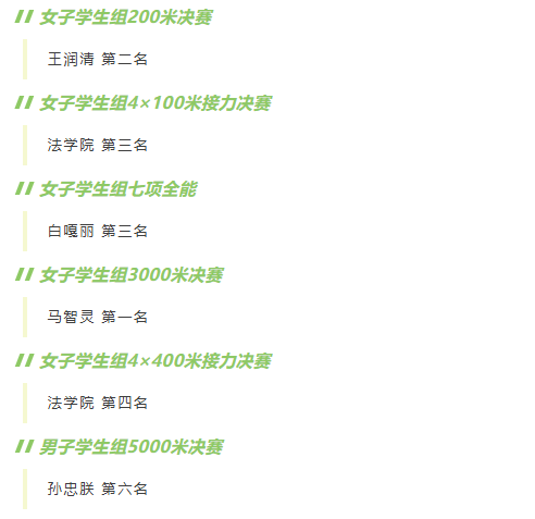 赛场上,我院运动健儿一次次突破体能极限,用汗水浇灌荣誉之花,用实力为自己和学院镌刻下荣耀勋章。他们矫健的身姿、坚毅的目光,生动诠释着新时代法学青年敢为人先、锐意进取的精神品格。