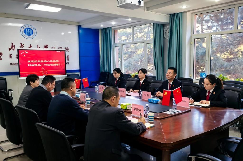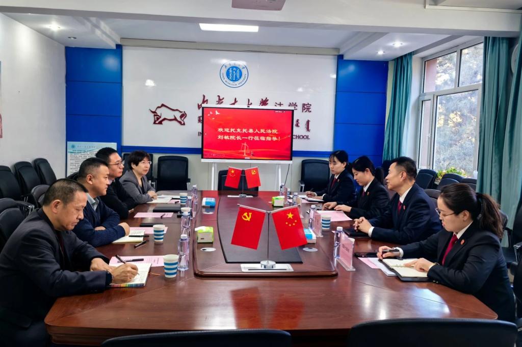 1月8日下午,托克托县人民法院党组书记、院长刘敏,副院长张秀梅等一行四人到访我院,并就进一步加强合作举行座谈。学院党委书记龙长海、院长丁鹏、鄂晓梅教授、行政办公室主任李俊龙参加座谈。双方围绕强化实践教学,着力提升以实践为导向的法治人才培养质量等事宜进行了深入交流,并就下一步合作重点达成一致。
