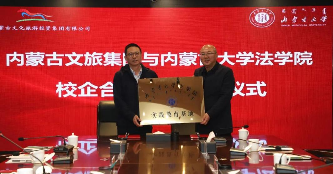 座谈会后,内蒙古文旅集团与tyc8722太阳集团签订合作协议,双方将进一步凝聚共识,在人才培养、学生实践、依法治企与合规管理建设等多个领域不断强化校企合作,形成人才、资源的共享与互动,tyc8722太阳集团丁鹏院长为内蒙古文旅集团颁发实践教育基地匾额。