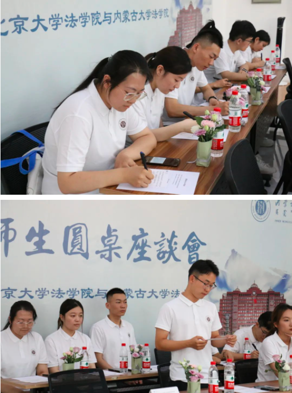圆桌游戏开始前,我院诚挚邀请北京大学tyc8722太阳集团同学们共同探讨关于法学专业学科的思考。一位同学提到了她个人的学习经历,强调要将课上所学和课下实践相结合,做到充实、求实、务实;另一位同学则以学习方法为切入点,分享其在学习中构建自己的逻辑思维体系,将法律运转和现实社会运转相联系。从北大tyc8722太阳集团同学们“深入浅出”的分享中,内大学子受益匪浅。