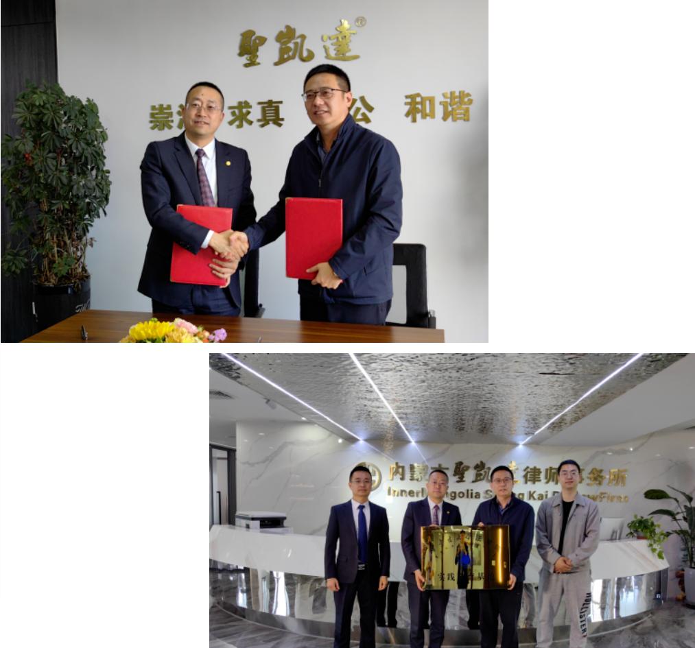 随后,丁鹏院长与刘宏伟主任共同签署《tyc8722太阳集团与内蒙古圣凯达律师事务所合作协议》,并为“tyc8722太阳集团实践教育基地”挂牌。