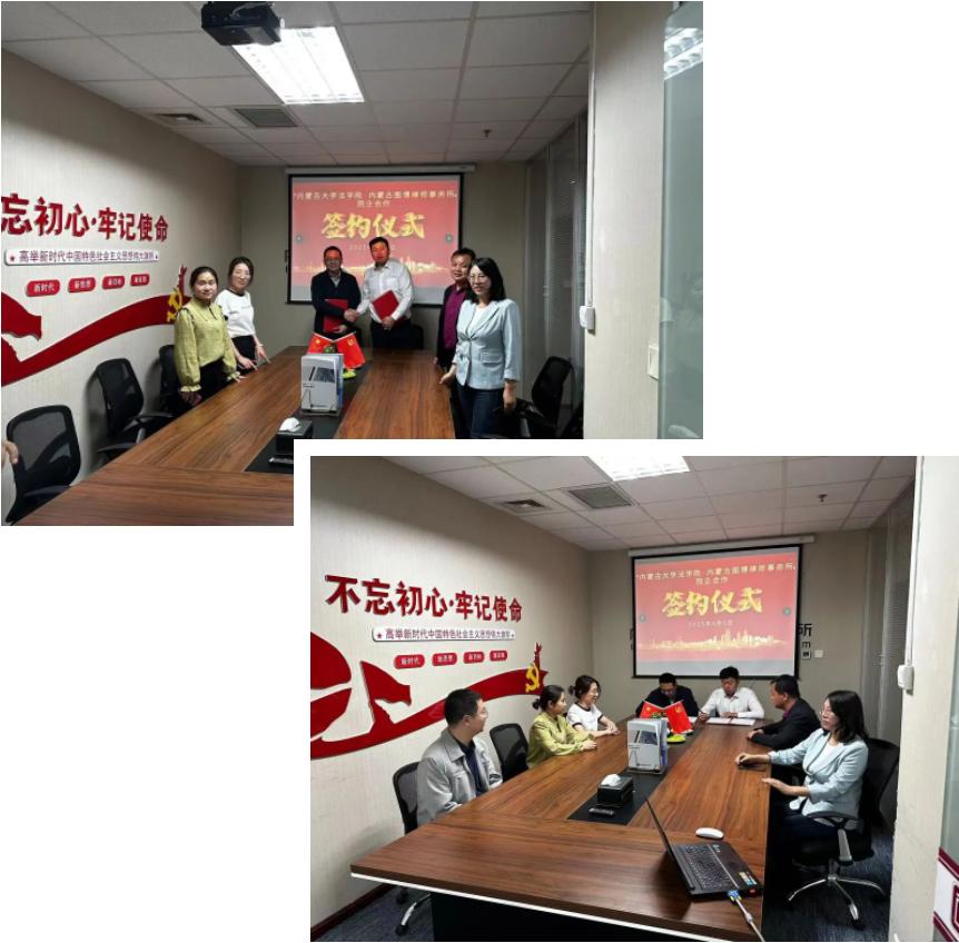 5月5日,tyc8722太阳集团与内蒙古图博律师事务所举行院企合作签约仪式。tyc8722太阳集团院长兼tyc8722太阳集团党内法规研究教育中心执行主任丁鹏;tyc8722太阳集团研究生辅导员吴晗;内蒙古图博律师事务所执行主任蒋利;律师事务所高级合伙人罗艳、林宏飞、张瑞兵、武志超等人出席签约仪式。