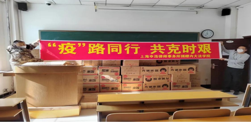 上海申浩律师事务所捐赠的物资在缓解了我院学生的生活压力的同时,也进一步增强了师生战胜疫情的信心。多难兴邦精诚志,同心同德显担当,校友的支持,师生的努力,为抗击疫情注入了无穷的力量,我们相信,我们终将战胜疫情。