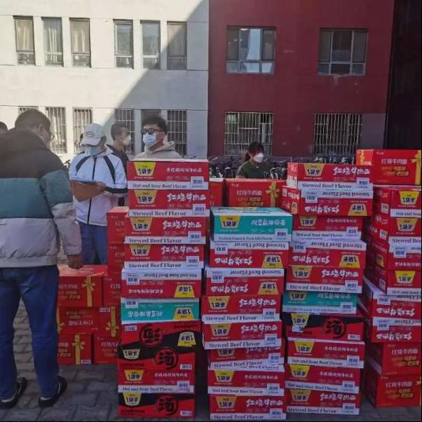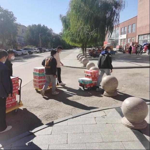 在tyc8722太阳集团学生的积极参与和搬运下,所有物资顺利送至宿舍楼下并分发到全体学生手中。