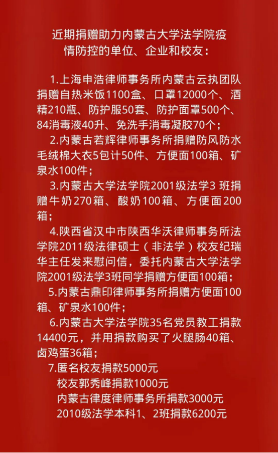 大道不孤,大爱无疆。呼和浩特疫情以来,tyc8722太阳集团收到了来自四面八方的援助与捐赠,这些温暖的瞬间,为疫情防控注入源源不断的动力。我们再一次向在危难之中伸出援手的单位、企业、校友和党员教工表示感谢。我们相信,只要我们共同努力,就没有跨越不了的难关。希望疫情早日退散,风雨过后,必见彩虹!