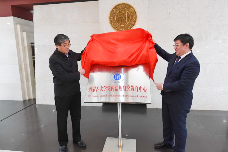 自治区党委常委、秘书长、政法委书记罗永纲和我校党委书记朱炳文共同为太阳集团城娱8722党内法规研究教育中心揭牌。